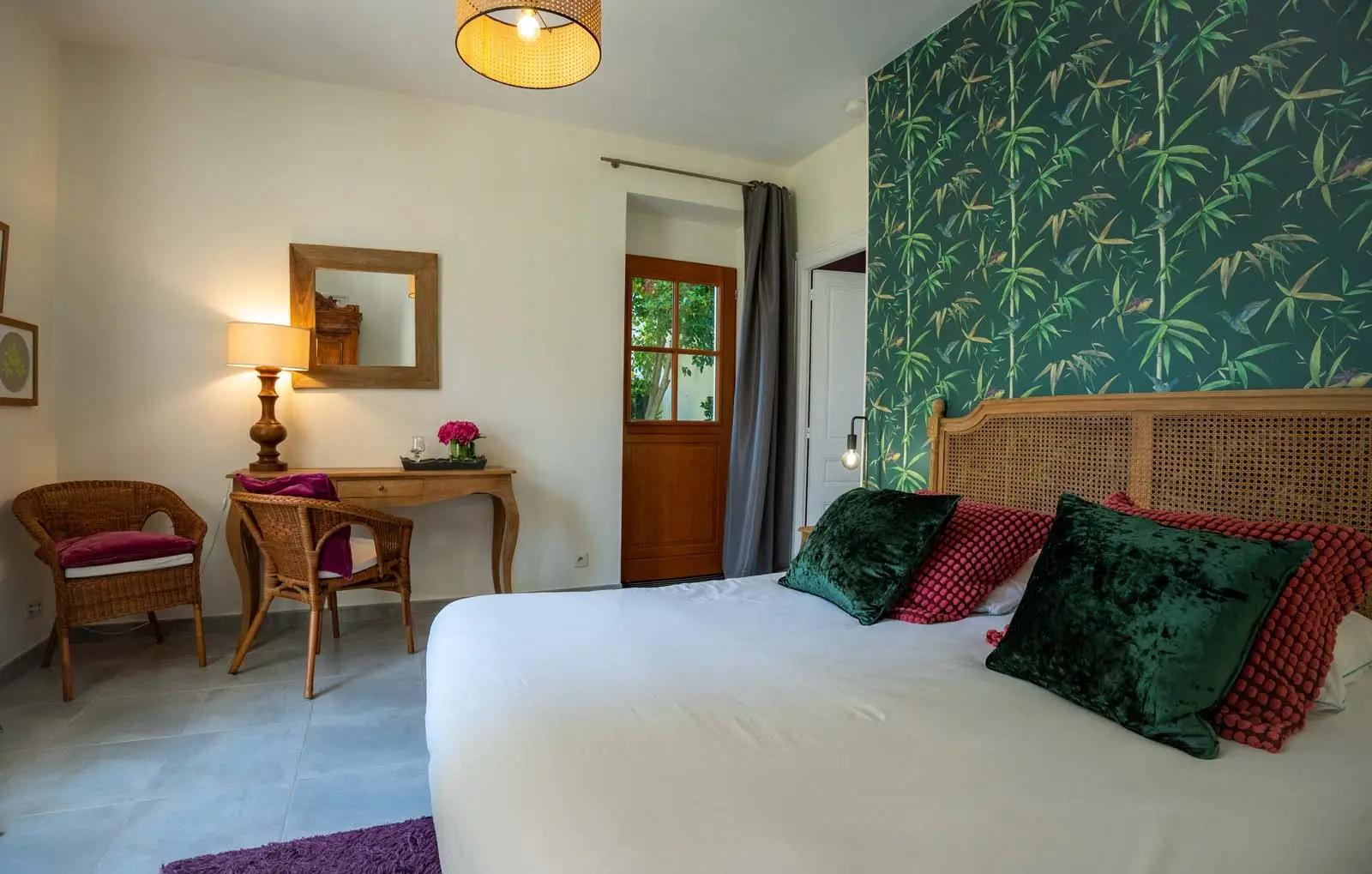 Au rez de chaussée de la maison et pourvue d’une entrée indépendante, l’accès à cette chambre d’hôtes se fait par la terrasse.