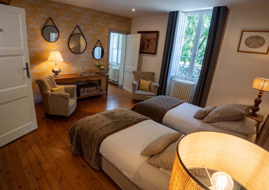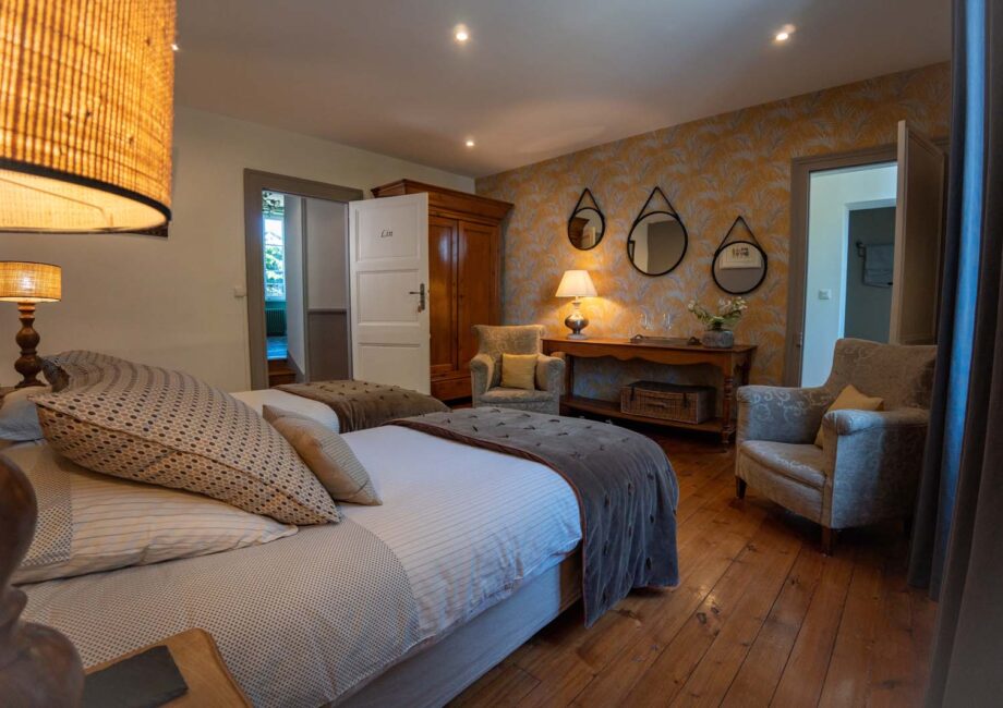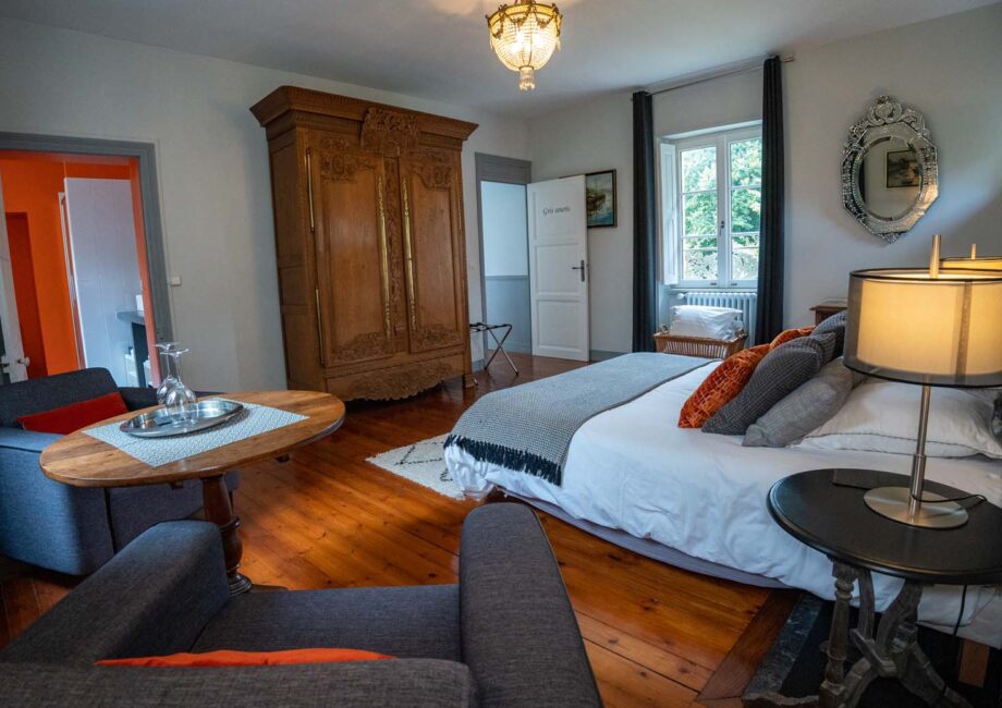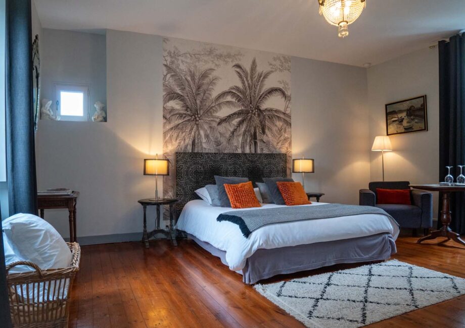 Room for 2 or 3 people. Inspired by its region rich in beaches, the Bord de Mer guest room respects an elegant maritime style. In driftwood and blue colors, this room offers a through view of the garden and Place Charles de Gaulle. This elegant space offers a 160 cm double bed, a sofa as […]