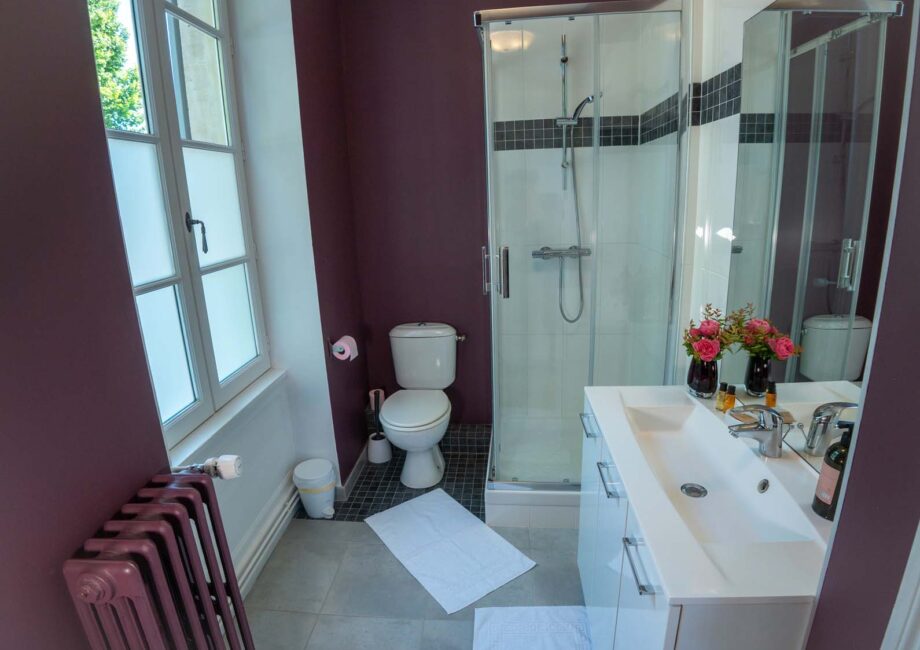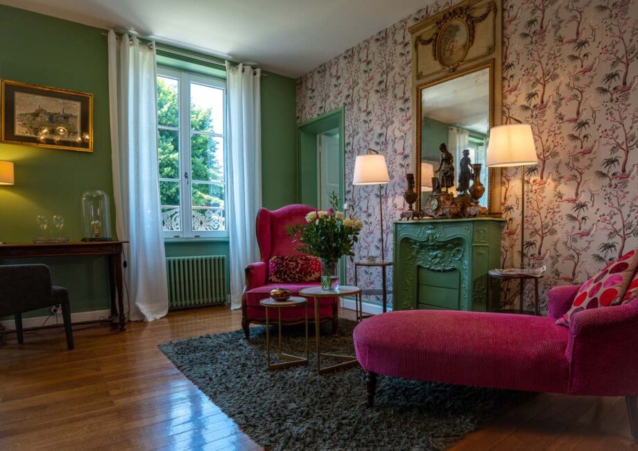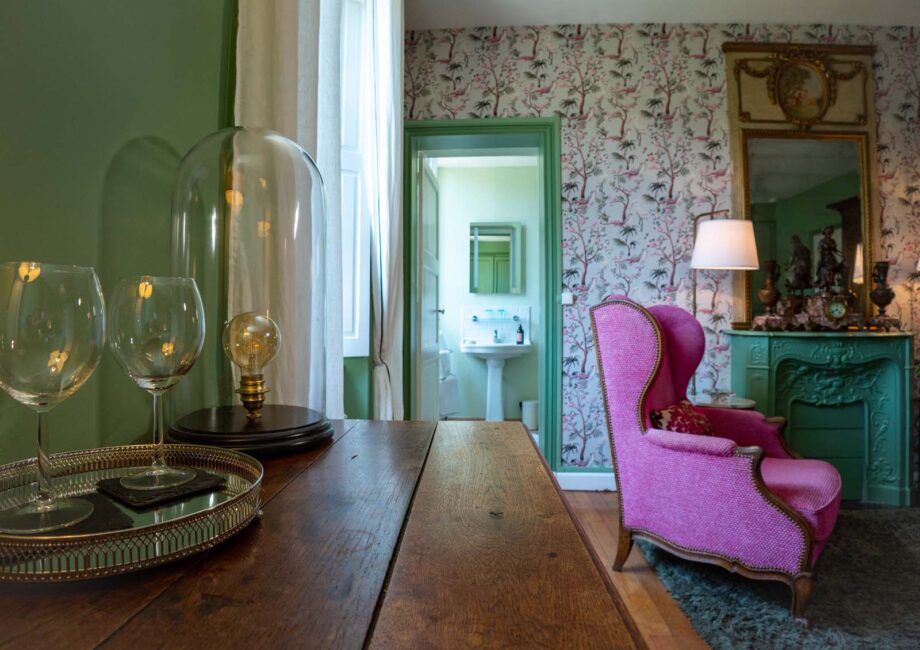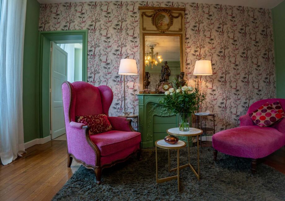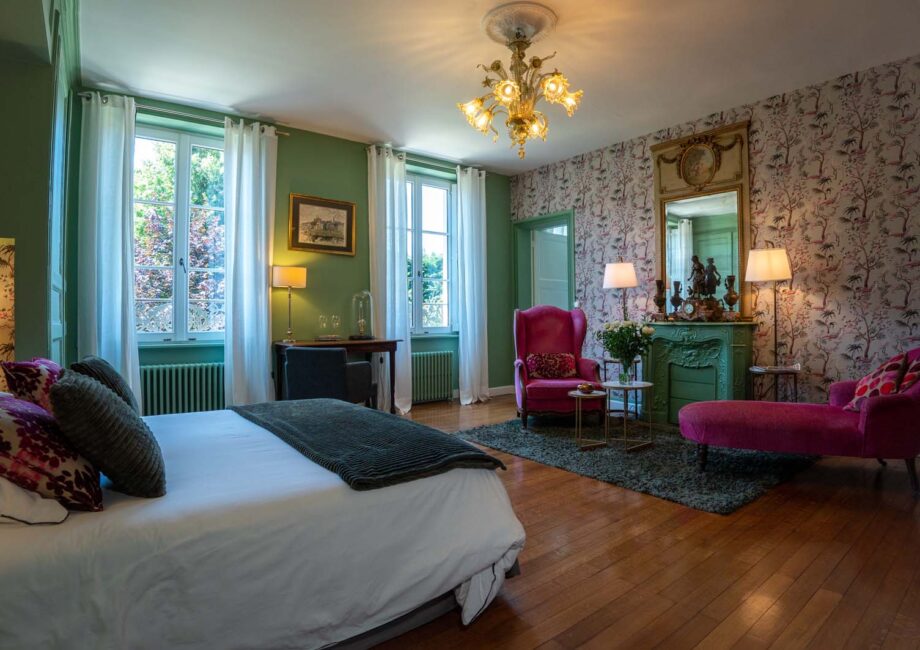 Located on the first floor of our house, it is served by a magnificent staircase, this room in all shades of pink and the most spacious.
